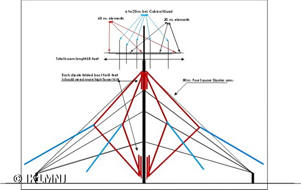80m. Komtek Four Square Vertical Dipole Array, layout